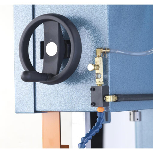 - Post Elevating Handwheel: Easy to operate post elevating hand wheel allows the operator to keep the upper saw guide block as close to the top of the material being cut without getting their hands close to the blade during adjustment. Proper positioning minimizes the possibility of band deflection increasing band life and safety.