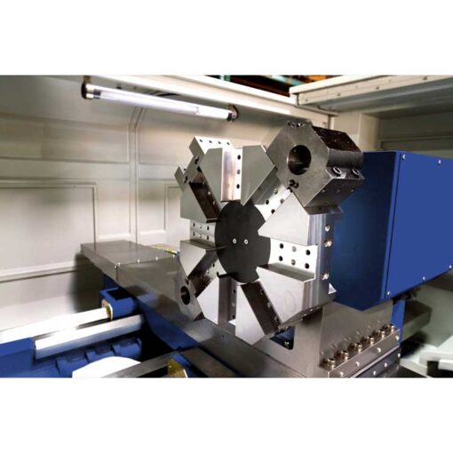 Kingston’s CX series heavy-duty precision lathes are built for cutting heavy and long workpieces in the energy, mining, textile, paper, and transportation industries. Utilizing the same headstocks and spindle bores as Kingston’s tried-and-true engine lathes, the CX is available in a wide variety of configurations so you can customize your machine to your exact needs. Choose from a 4.06″, 7.09″, 10.1″, 12.5″, or 14.8″ bore, 34″ or 40″ swing, and lengths from 120″-280″. It is equipped with a V8 hydraulic turret and 5.45 HP and 9.5 HP AC servo motors that drive the X- and Z-Axis respectively. The headstock has 4 gearshifts controlled by hydraulics for greater torque and the main spindle has a three-point bearing support system-making it ideal for cutting heavy and extremely hard materials.